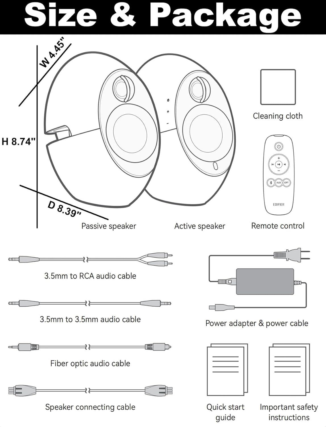 Compact Size – Measuring W4.45″ x D8.39″ x 8.74″, ideal for desktop speaker without occupying much space, combining practicality with elegance