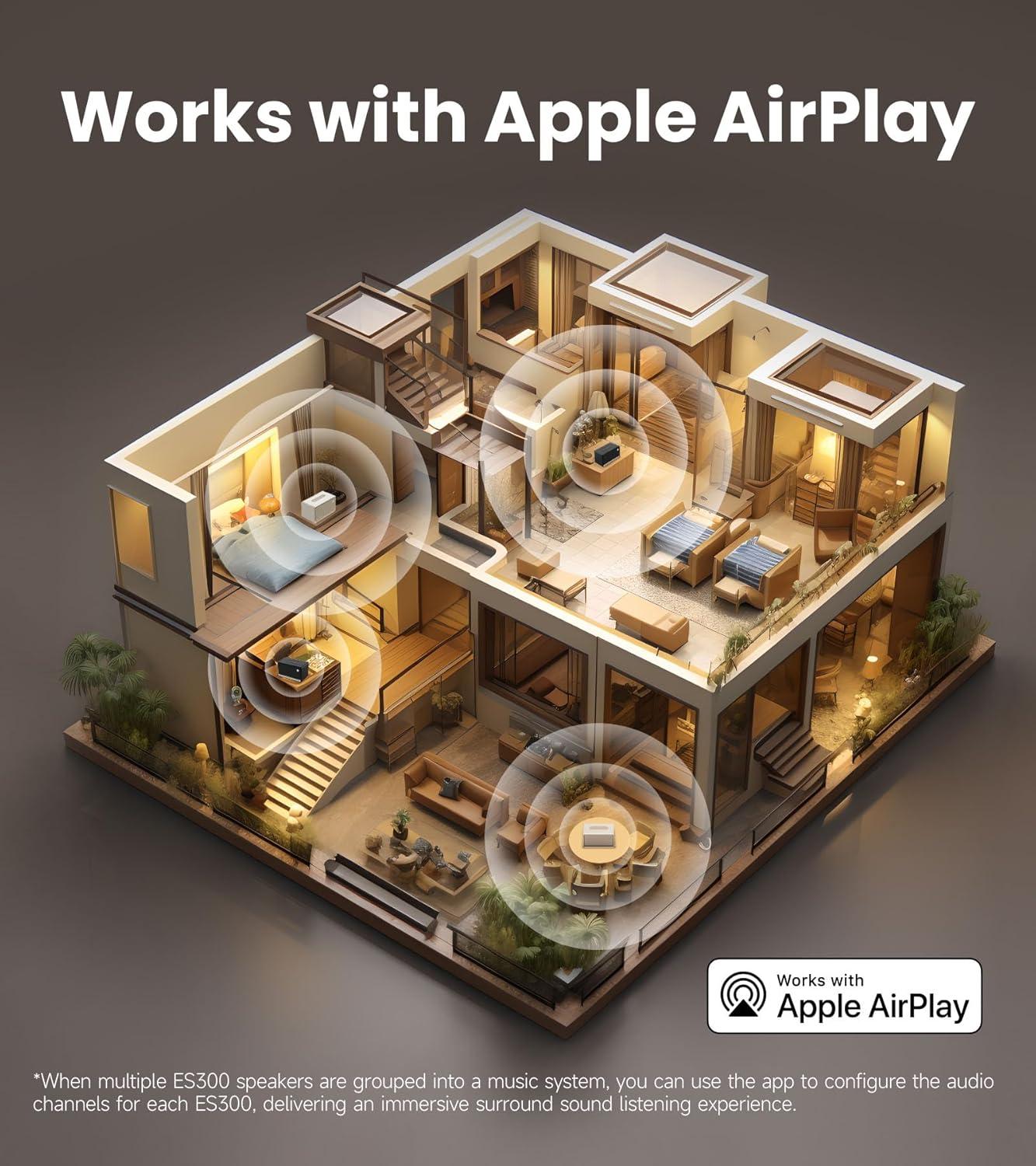 MULTI-ROOM AUDIO SYNCHRONIZATION – Works with Airplay 2, you can group one or more speakers into a multi-room music system. This system allows you to walk around different rooms with uninterrupted music, providing an immersive music experience.