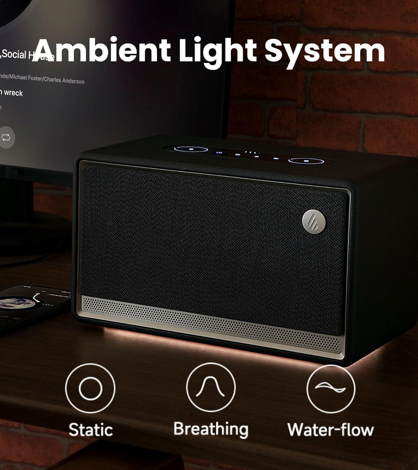 12-HOUR BATTERY LIFE – The built-in 5200mAh battery offers up to 12 hours of playtime, making it perfect for home, office, and on-the-go use. Three light effects and two colors add more pleasure to the musical journey.