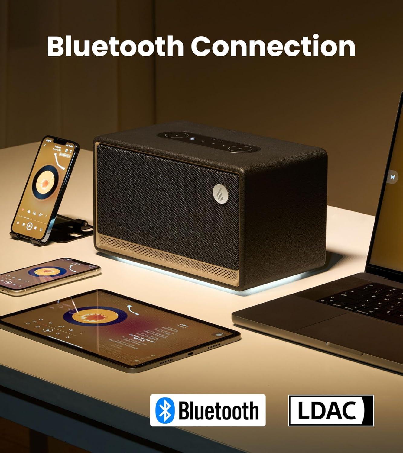 MULTIPLE CONNECTIVITY OPTIONS FOR VERSATILE USE – With Bluetooth 5.3, WiFi (5G and 2.4G), USB, and AUX inputs, this speaker offers versatile connectivity to suit all your needs. With Bluetooth connectivity, the multi-point connection allows you to pair two devices simultaneously for seamless switching.