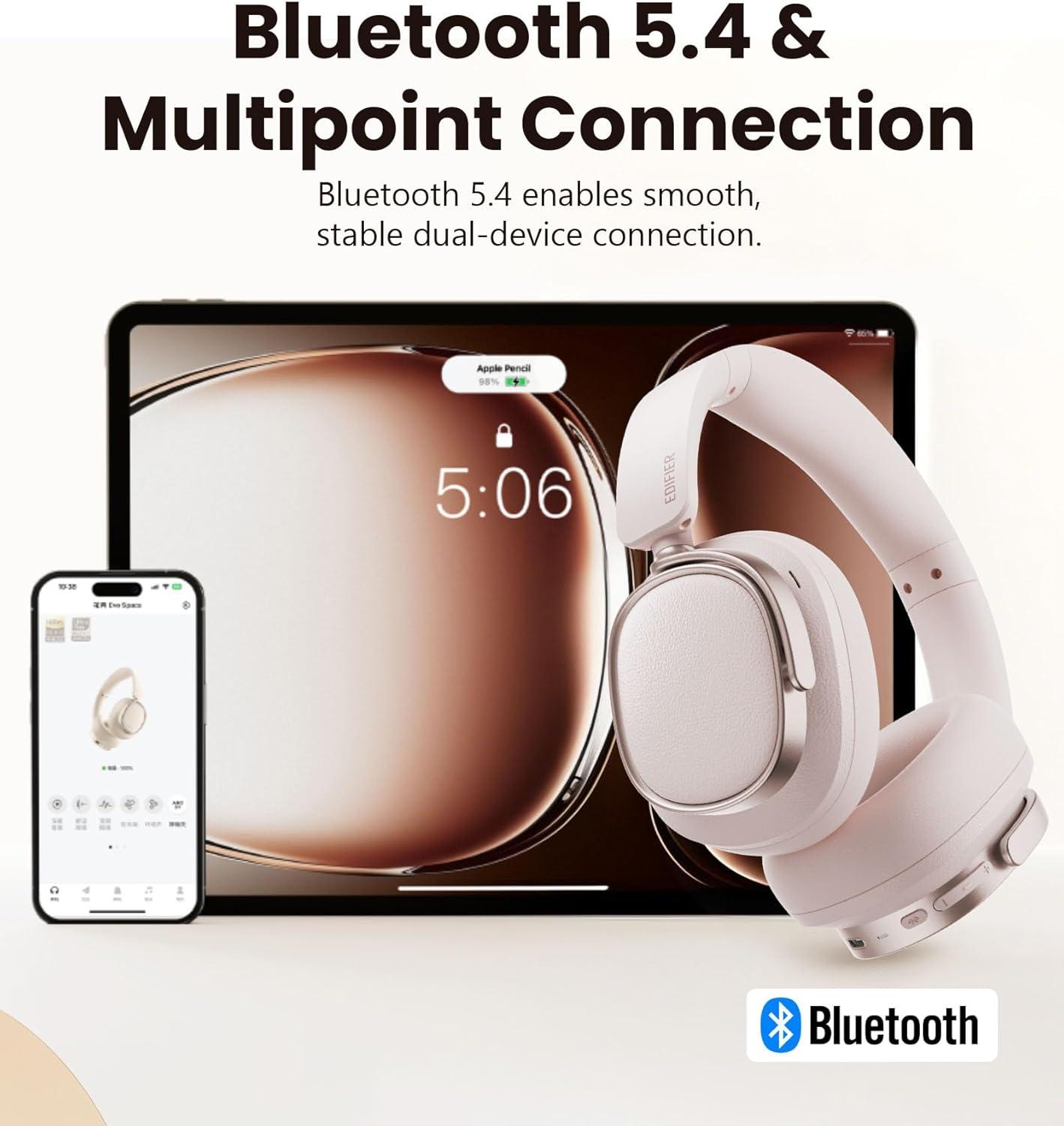Edifier ES850NB Active Noise Cancelling Headphones, Over Ear Bluetooth Headset, 92H Playtime Wired & Wireless Hi-Res Audio Certified, Fast Charging Clear Calls for Home Office Travel (Black)(Ivory)