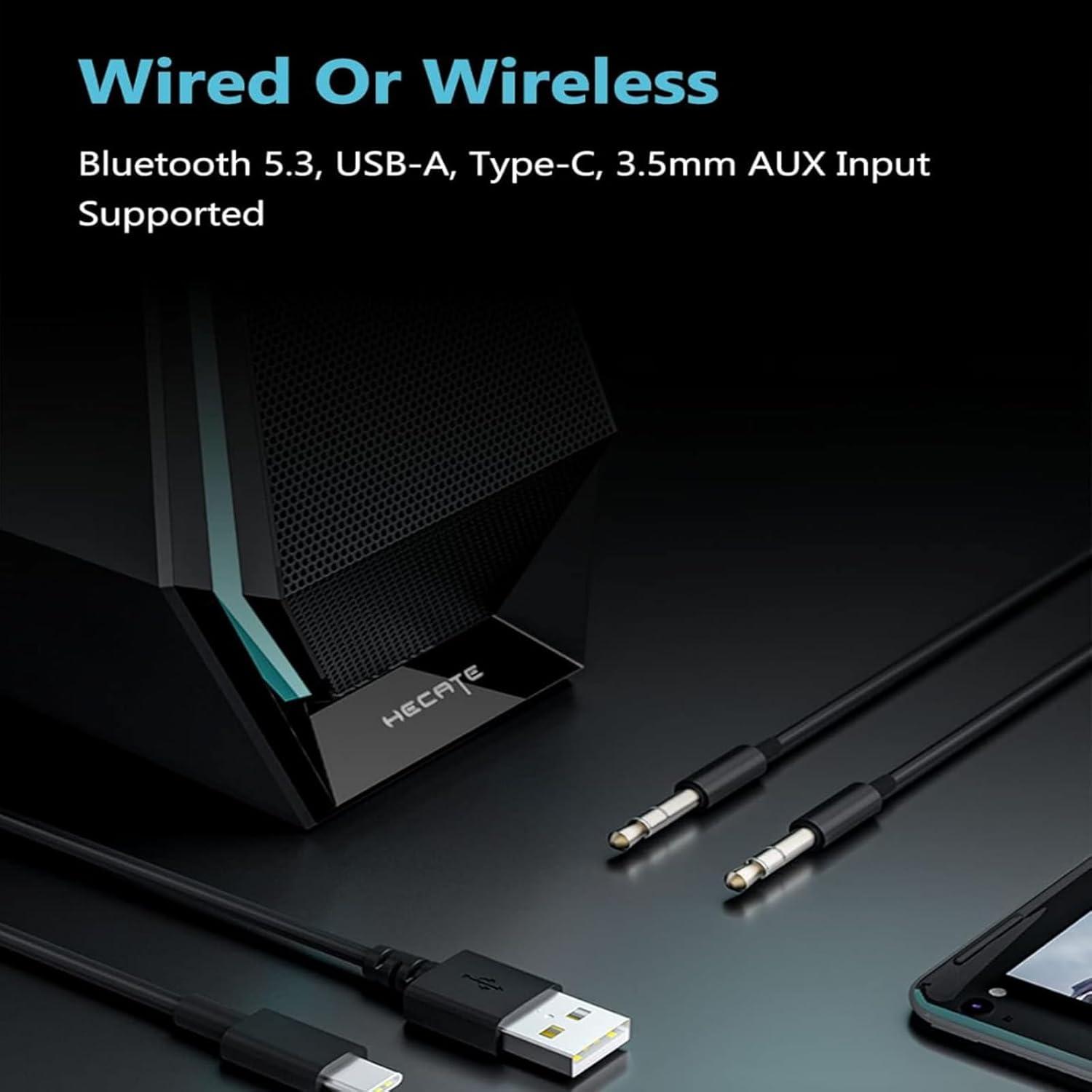 Edifier G1500 MAX 2.1 Computer Speakers System, 60W Hecate Gaming Speakers with Subwoofer Line Out, RGB Light, Bluetooth 5.3, USB, Type-C, 3.5mm AUX Input, Black
