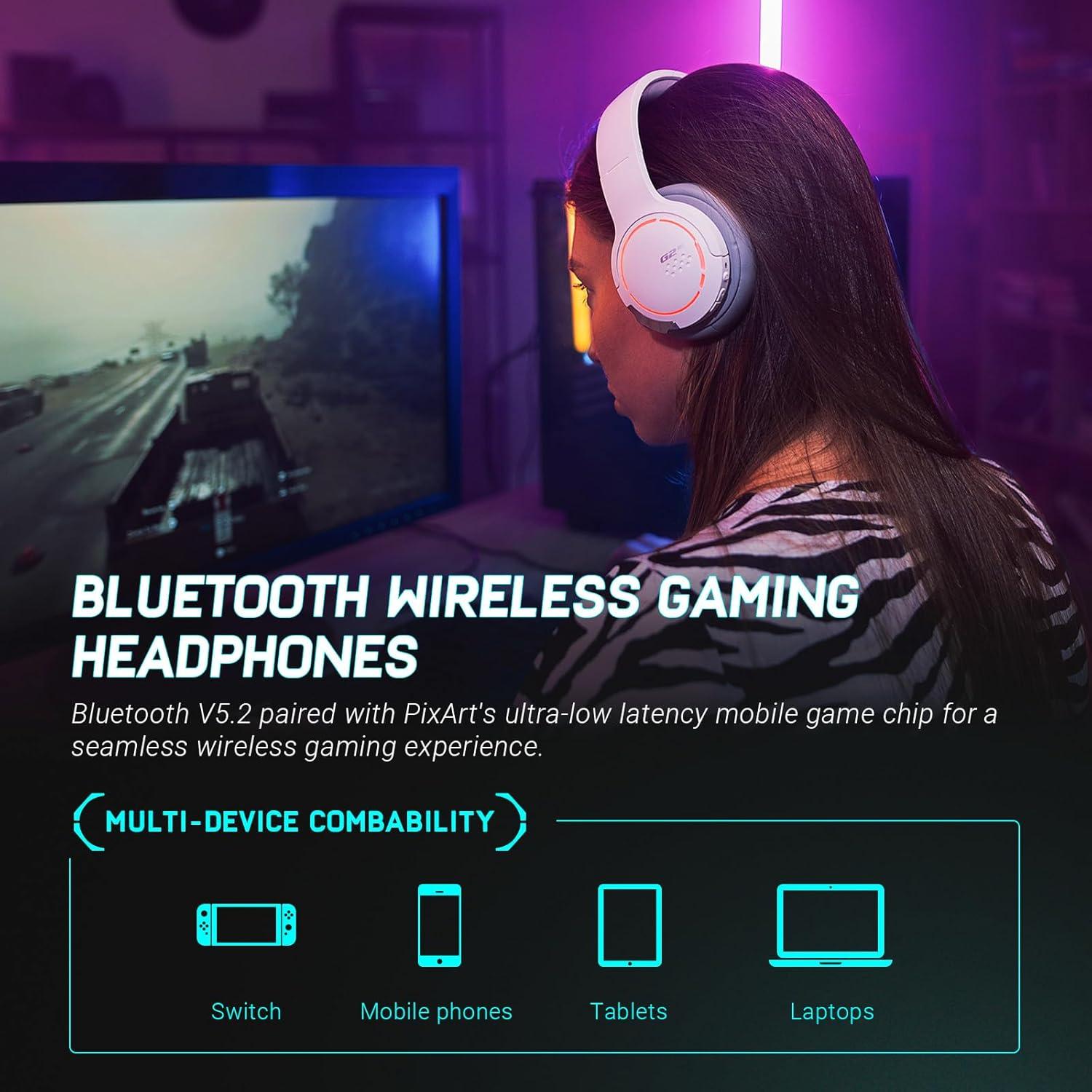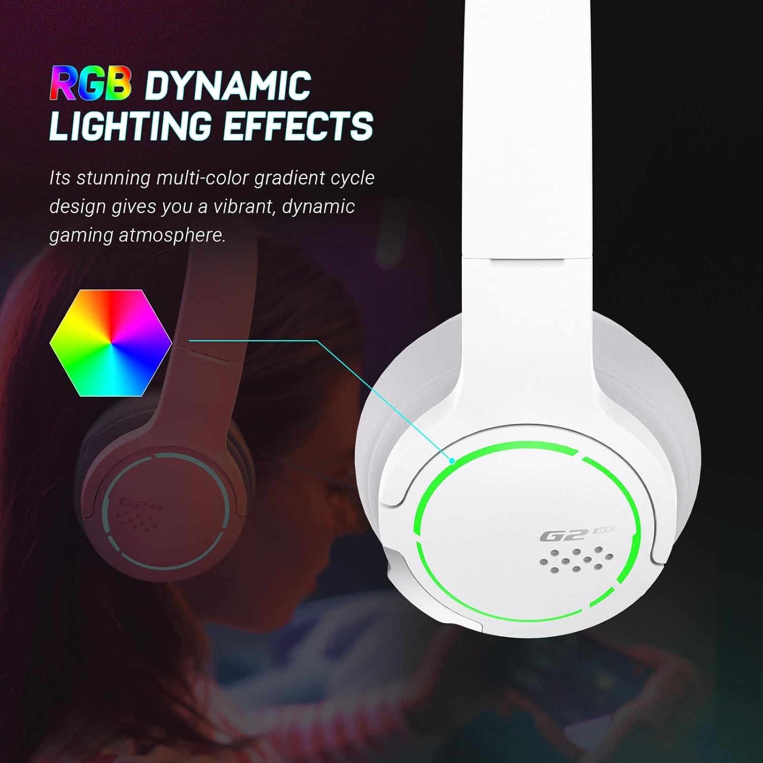 RGB LIGHTING EFFECTS – The G2BT headset has dynamic RGB backlight technology, creating a captivating E-sports atmosphere with a multi-color gradient cycle design. Enhances the headset's visual appeal and elevates gaming experience by immersing you in vibrant and dynamic gaming environment.
