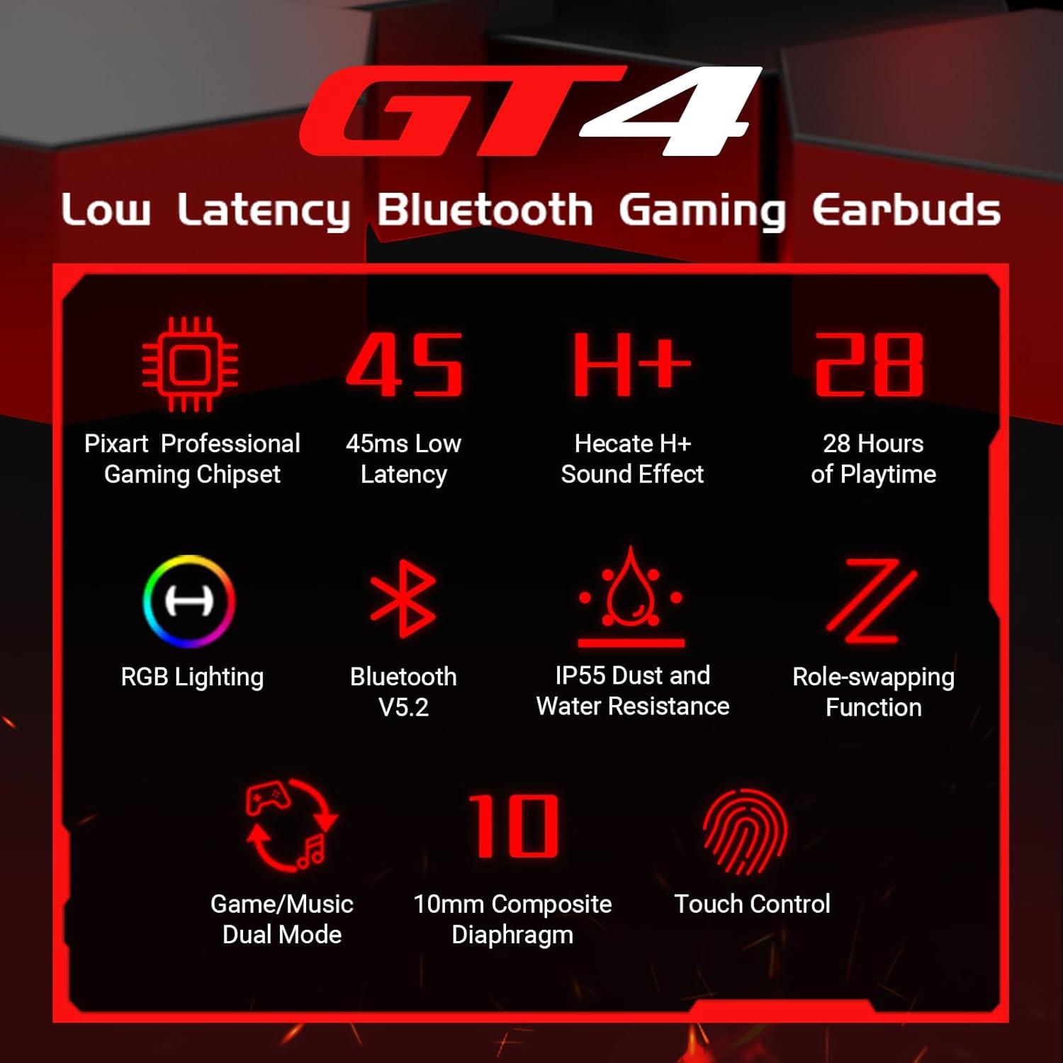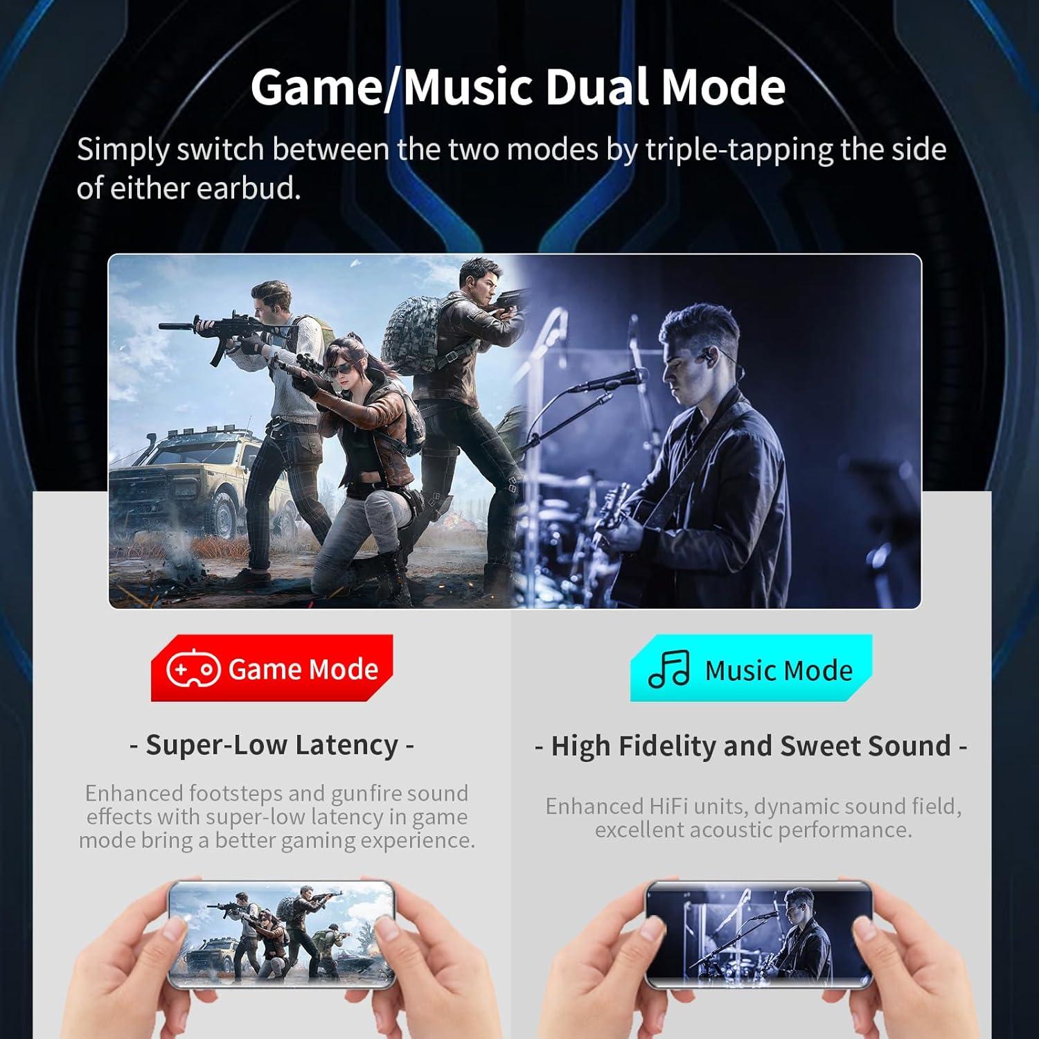 Flexible Gaming and Music Modes – Effortlessly switch between dedicated gaming and music playback modes with intuitive touch controls, optimizing your audio experience for every scenario.