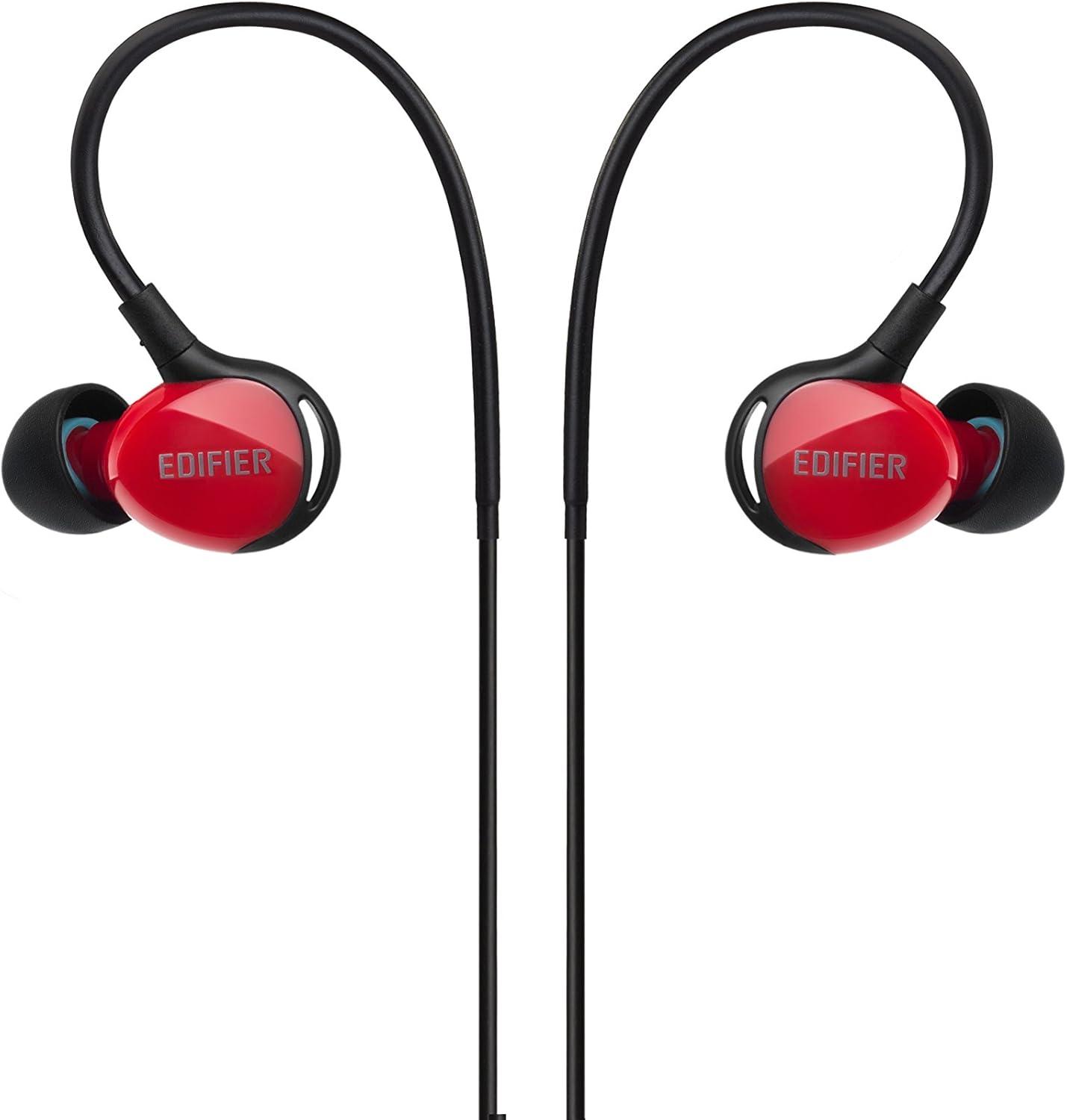 Edifier P281 Waterproof Computer Headset - Sports in-Ear Earphones IP57 Rated with Memory Around-The-Ear Wire for Running, Workout, Exercise - Red(Red)