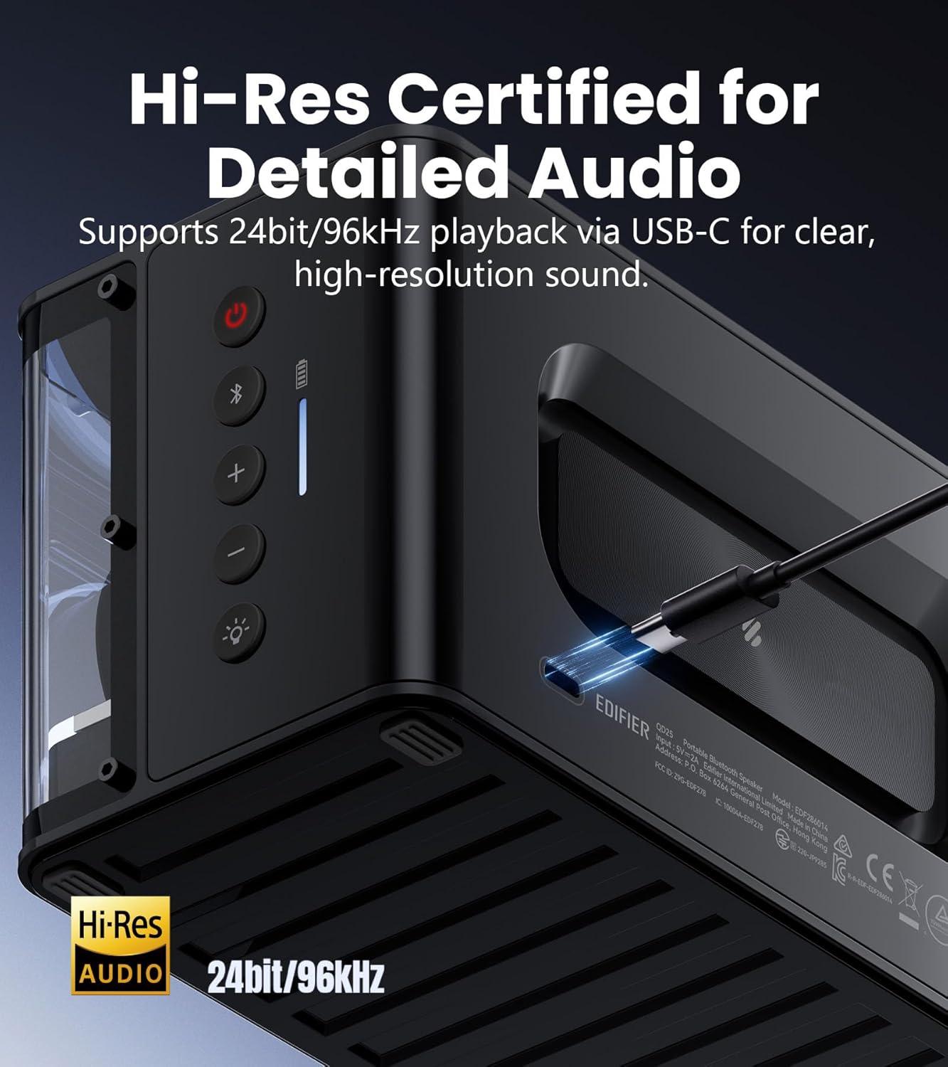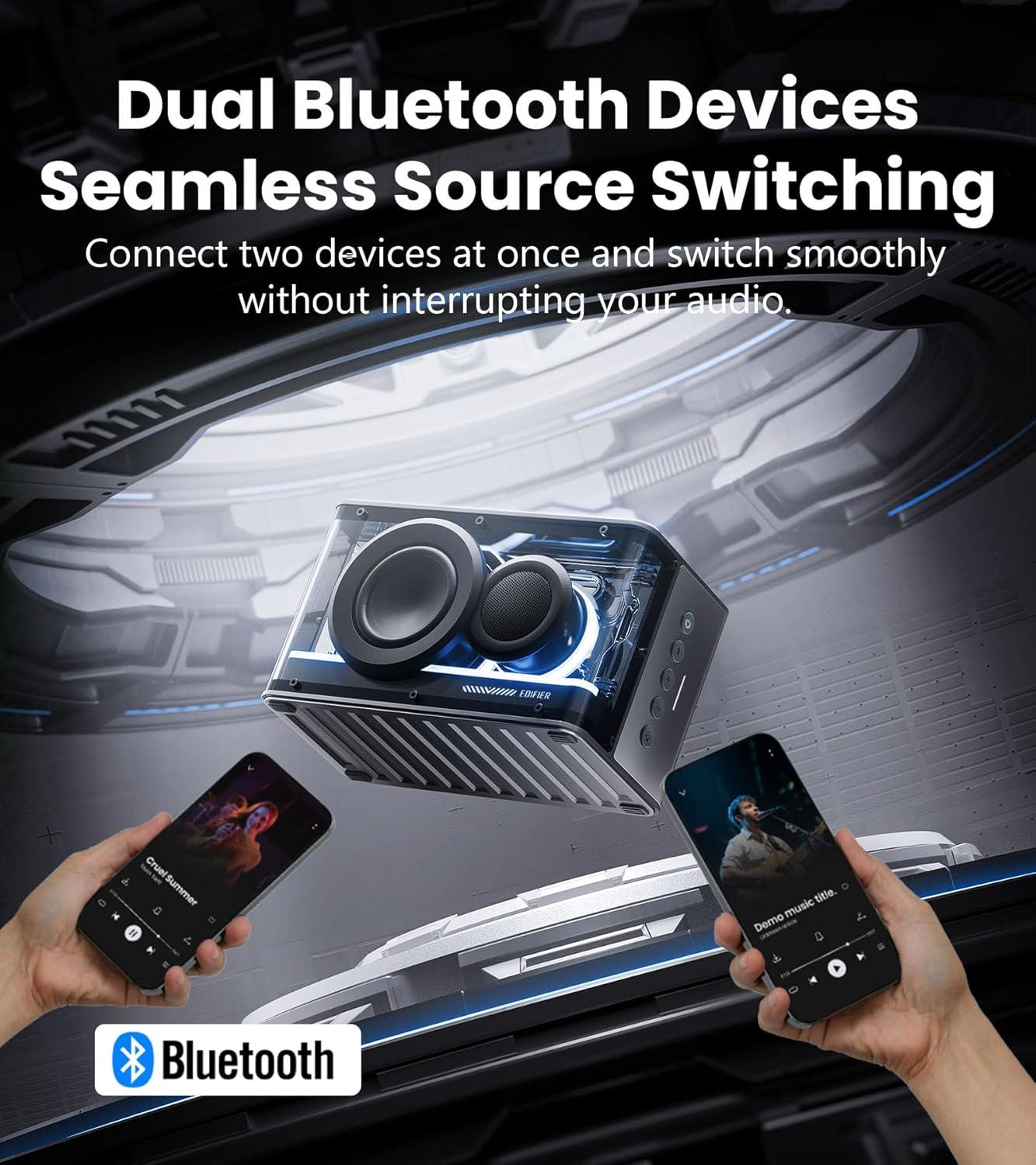25W Dynamic Sound:Powered by 25W RMS, this Bluetooth speaker, enhanced by a Class-D amplifier, fills any space with dynamic audio. It balances delicate soft passages and intense loud sections, perfect for all types of content.​