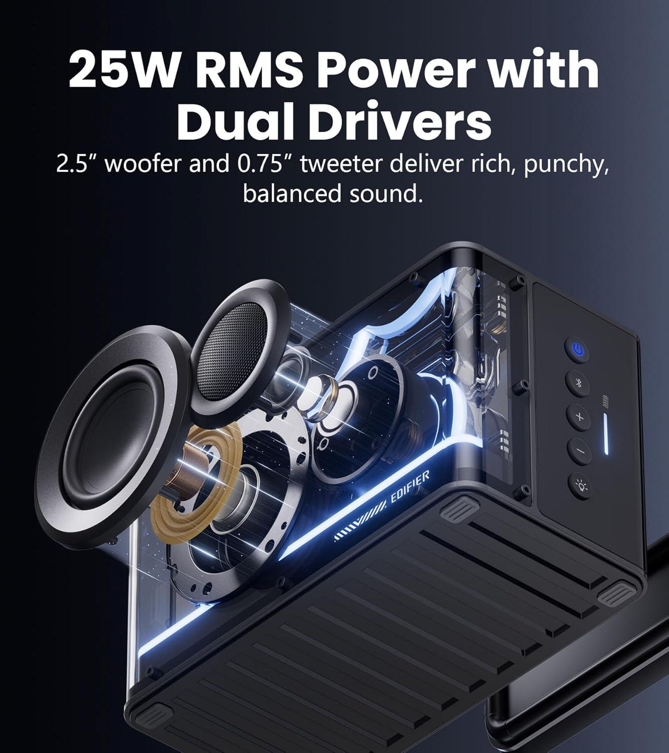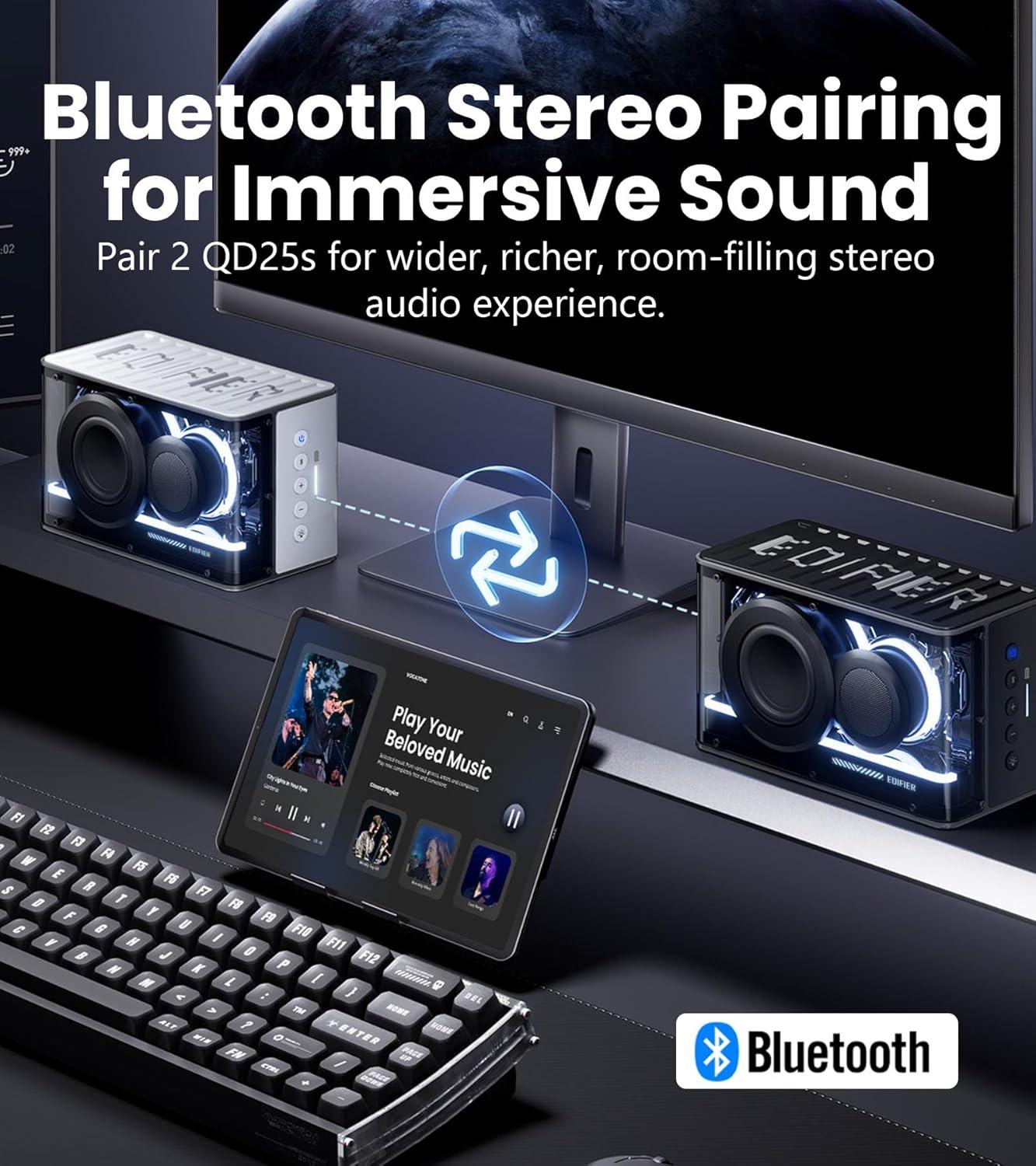 Edifier QD25 Bluetooth Speaker | Portable Desktop Audio, 25W (RMS) Dynamic Sound, Hi-Res Audio, Splendid Light Effects, 15H Playtime, Bluetooth 6.0, Wireless Stereo Pairing, Black(Black)