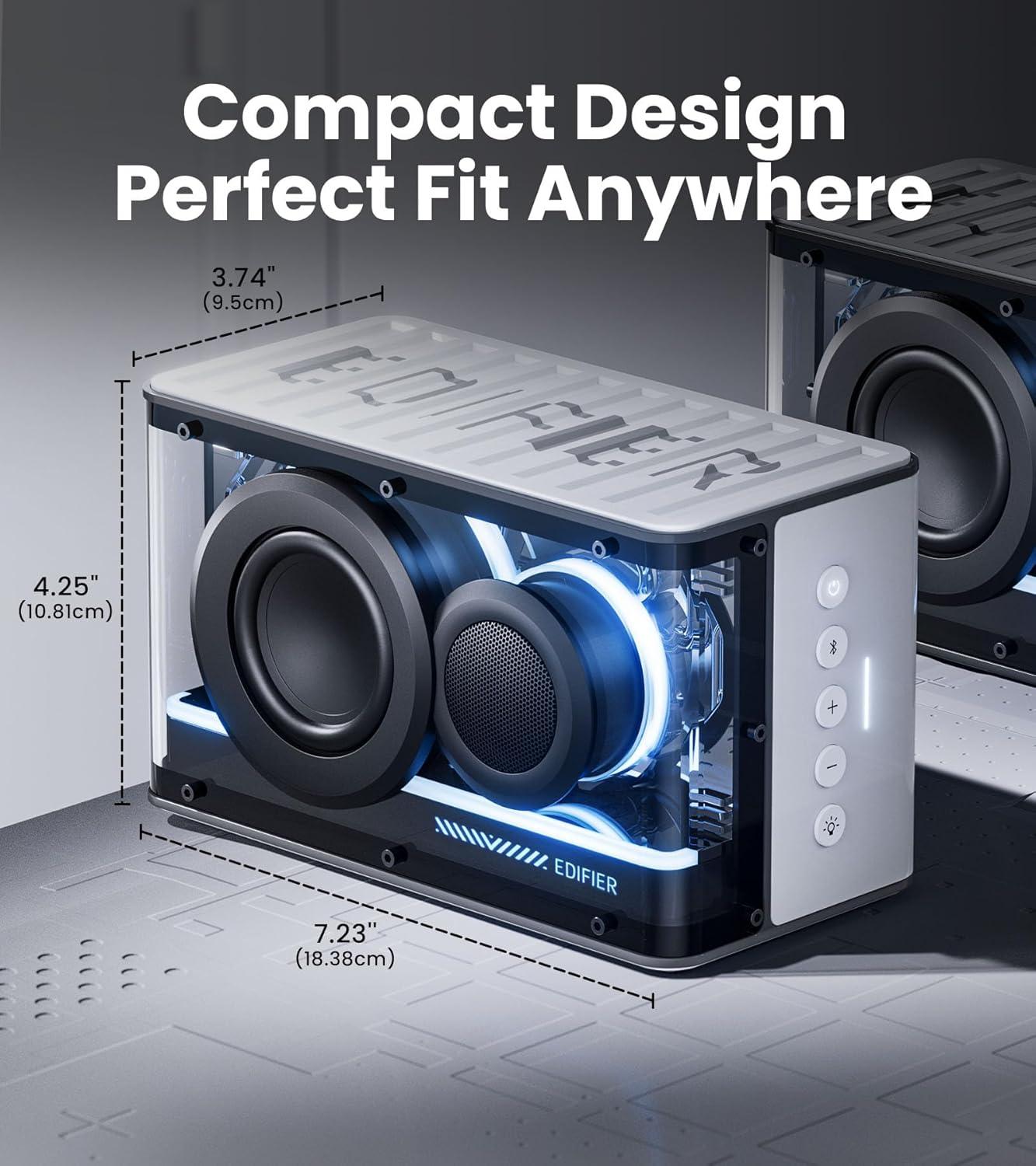 Edifier QD25 Bluetooth Speaker | Portable Desktop Audio, 25W (RMS) Dynamic Sound, Hi-Res Audio, Splendid Light Effects, 15H Playtime, Bluetooth 6.0, Wireless Stereo Pairing, Black(White)