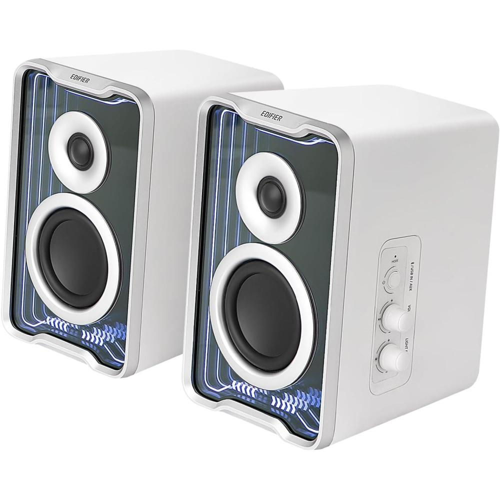Edifier QR30 2.0 Desktop Active Speaker, Compact Bluetooth V5.4 Computer Speakers, Wireless Bookshelf Speaker, 30W (RMS), 3.5mm AUX & USB-A Wired Input, Dynamic Light Effects, App Control, White(White)