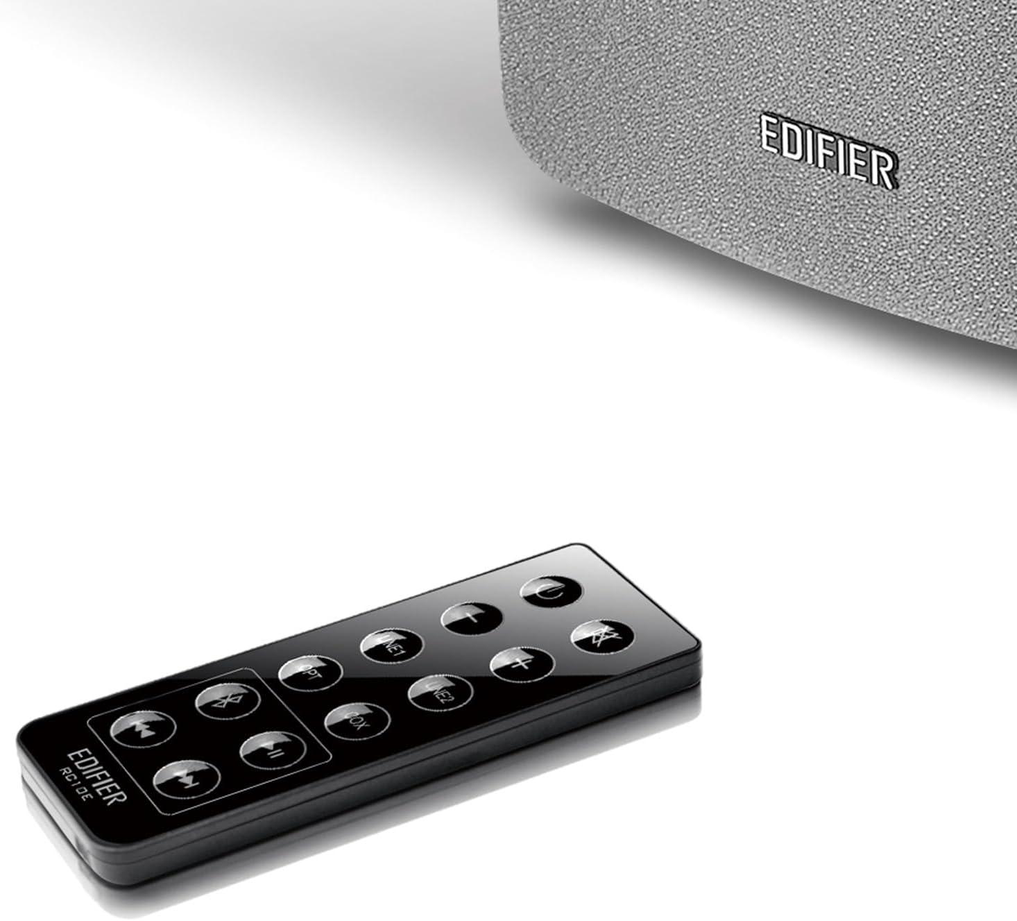 REMOTE CONTROL – Adjust the volume and toggle inputs at your fingertips. Bass and treble control located on the side of main speaker.