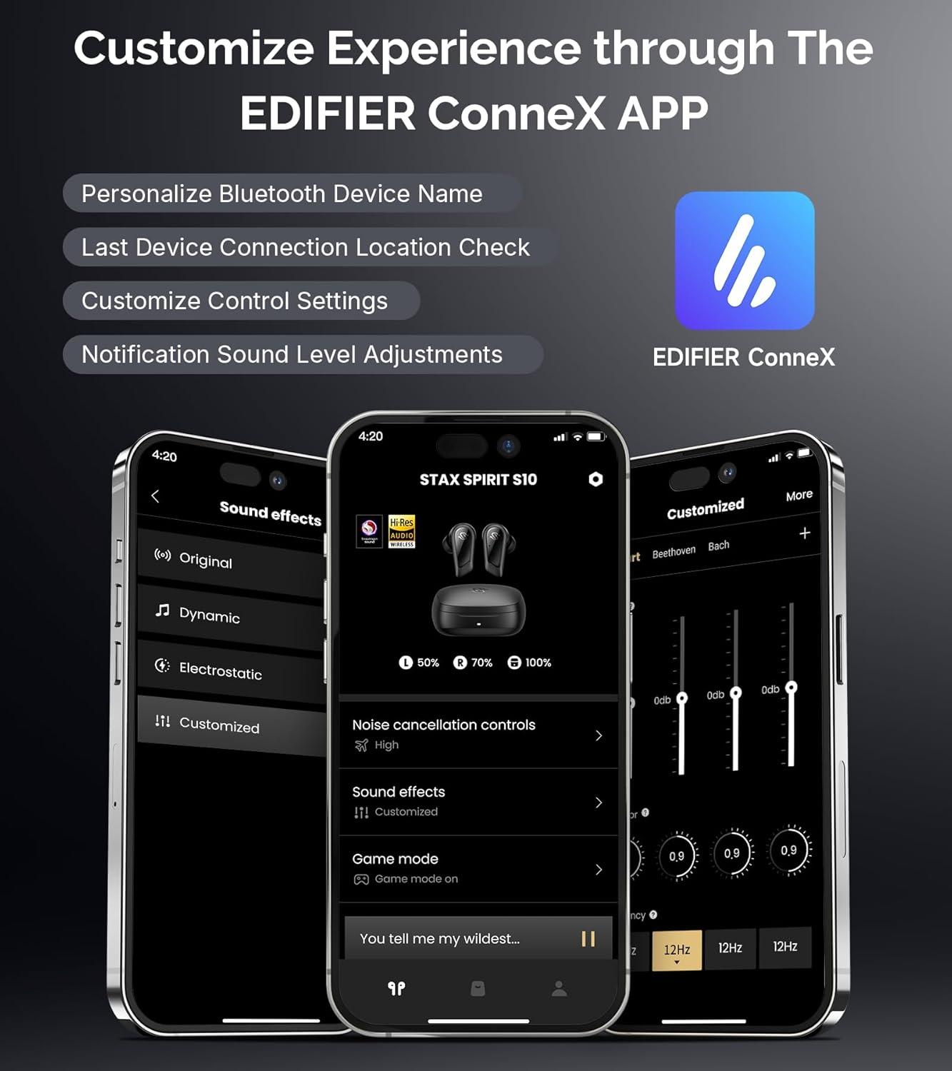 [Customizable Experience]:Personalize your listening style and customize controls by easily using the EDIFIER ConneX app, tailored to enhance your audio experience.