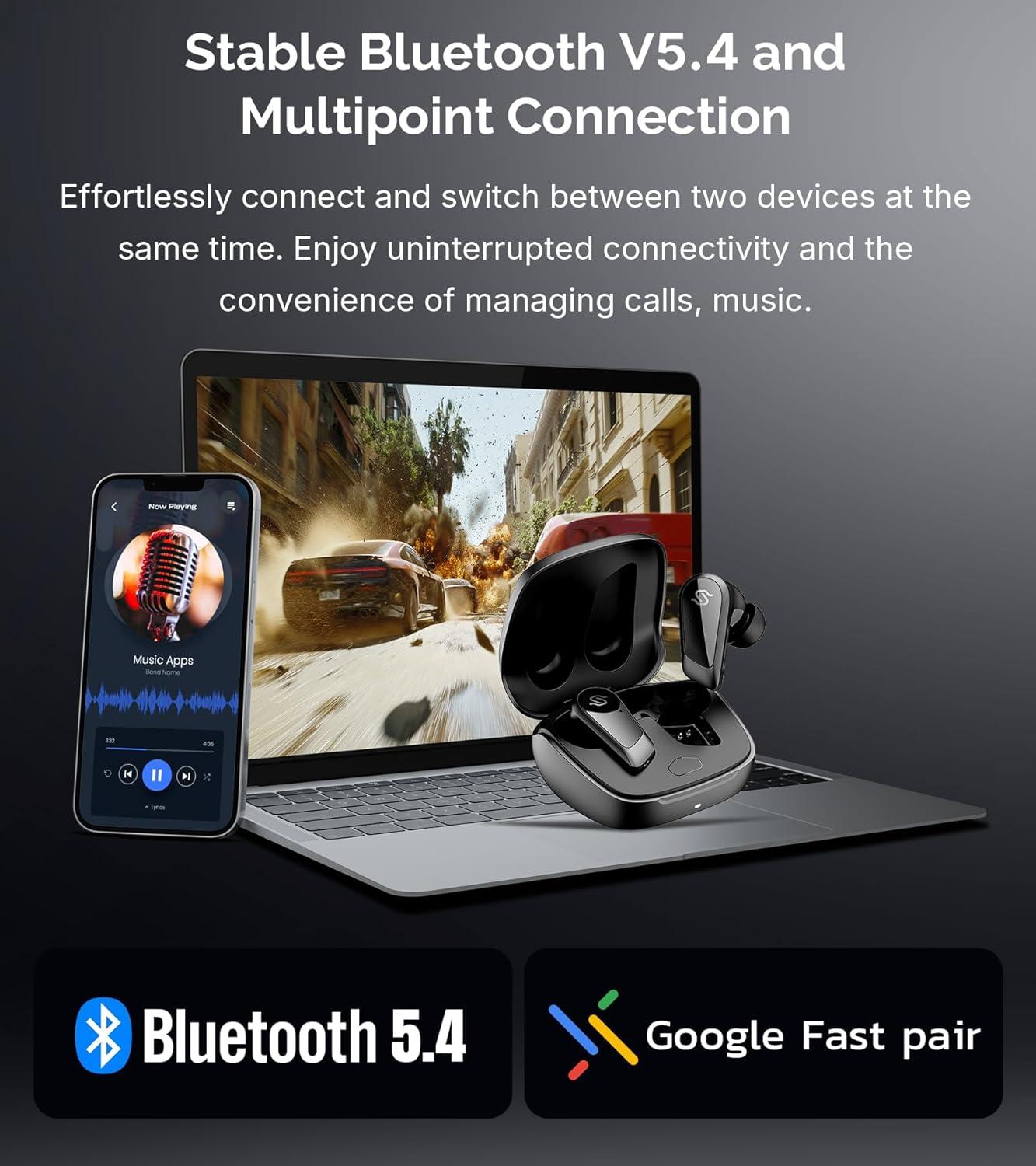 [Multipoint Connection]:Effortlessly connect and switch between two devices at the same time. Enjoy uninterrupted connectivity and the convenience of managing calls, music, and more without having to constantly reconnect.