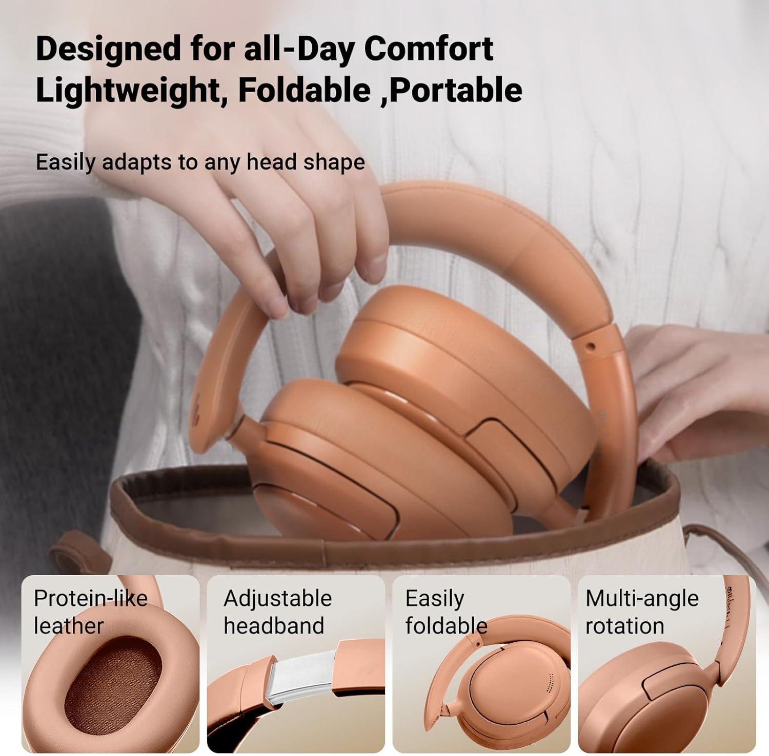 imageEdifier V80 Hybrid Active Noise Cancelling Headphones True Wireless Over Ear Bluetooth Headset with 45H Playtime HiRes Audio Fast Charging Multipoint Connection for Travel Home Office NavyBrown