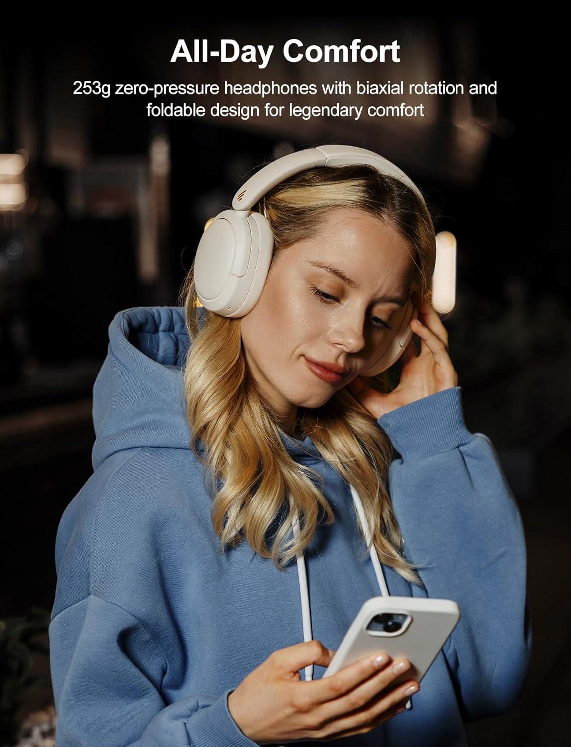 Edifier W800BT Pro -44dB Hybrid Active Noise Cancelling Headphones, Wireless Over Ear Headphones with Bluetooth 5.4, Hi-Res Audio, AI Clear Call, Custom EQ via App, Foldable Design, 253g Comfort Black(Ivory)