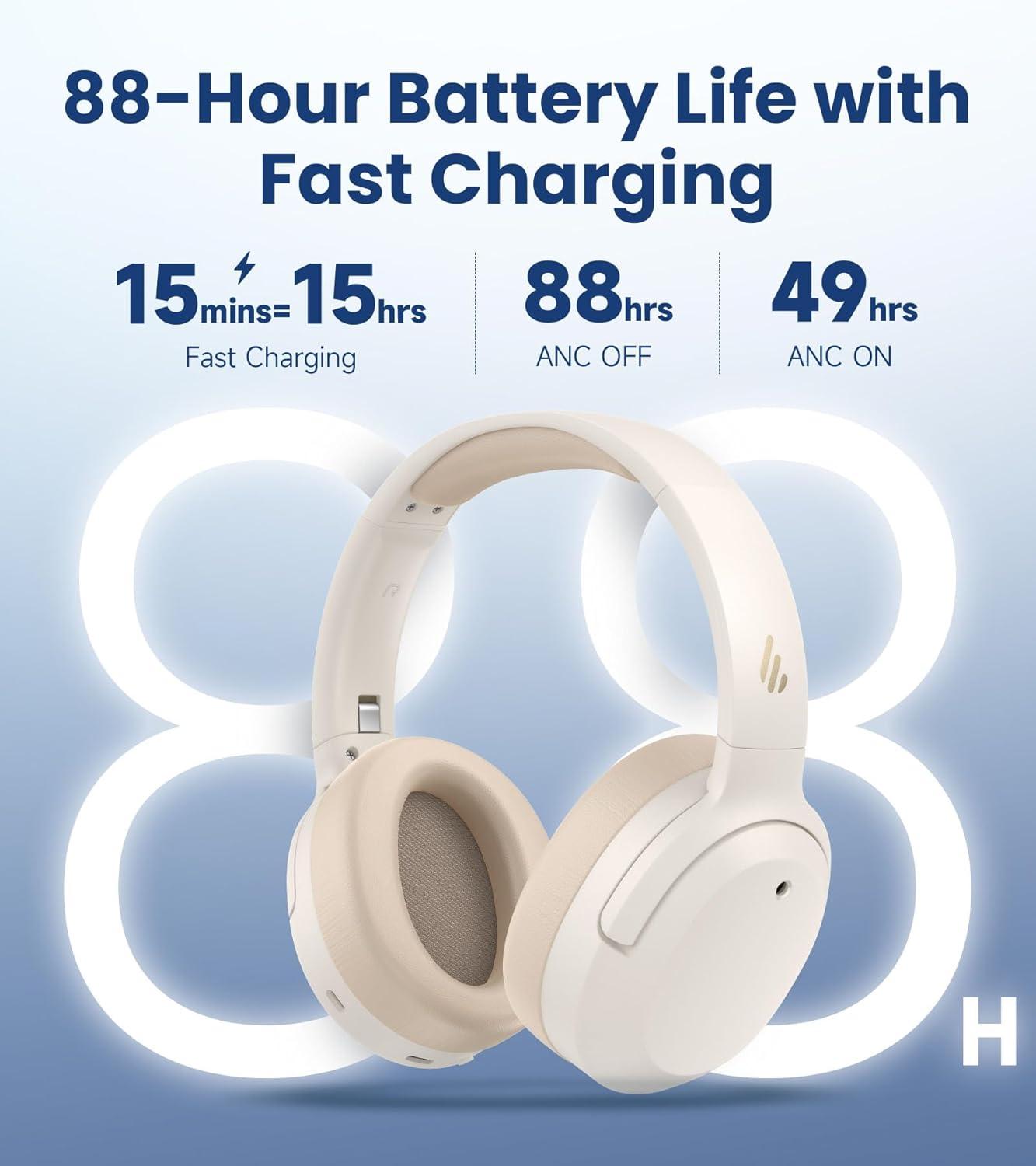 Edifier W820NB Plus Gen 2 Wireless Over-Ear Noise Cancelling Headphone, -49 dB ANC, LDAC Hi-Res Audio, 88H Playtime, Spatial Sound, Volume Guard, Bluetooth V6.1 & Multipoint, Fast Charge – Ivory(Ivory)