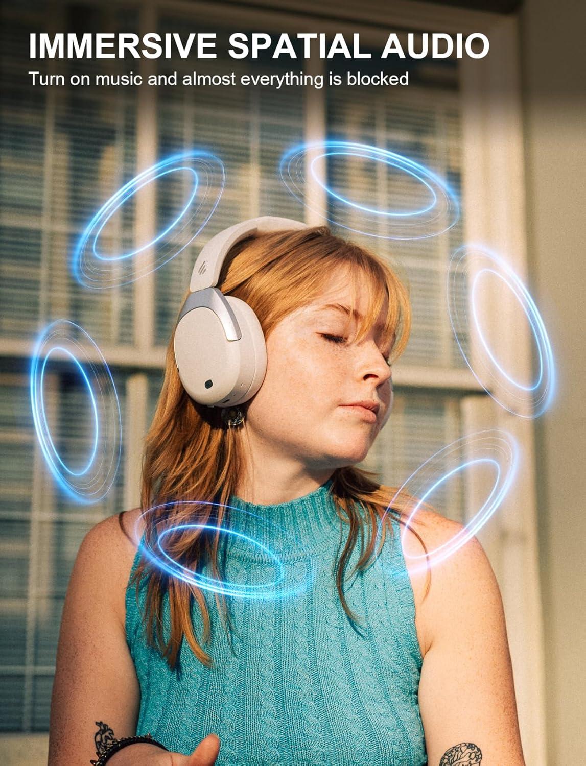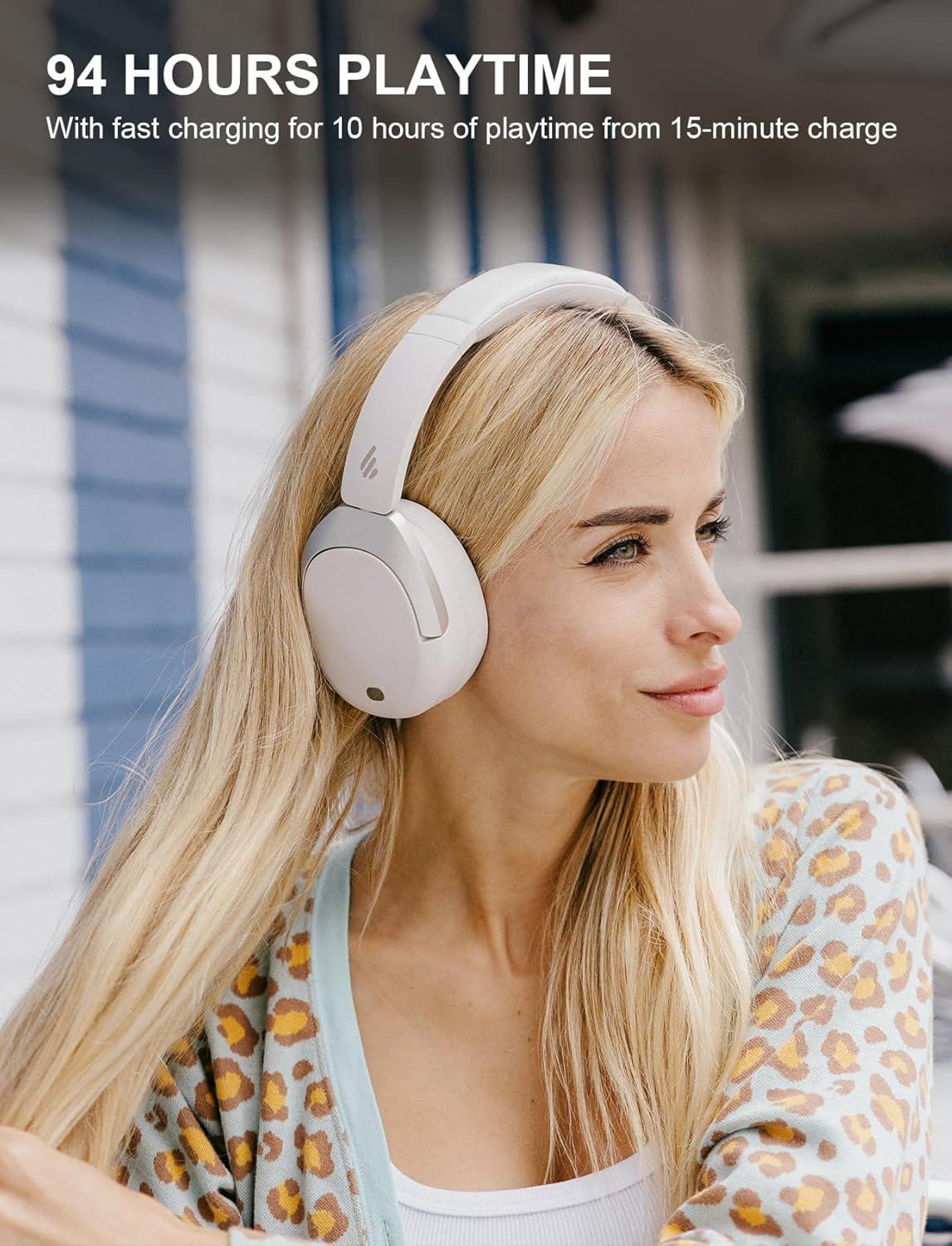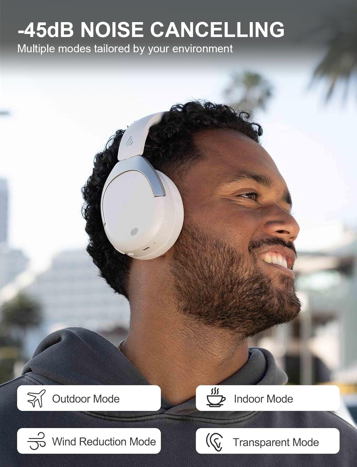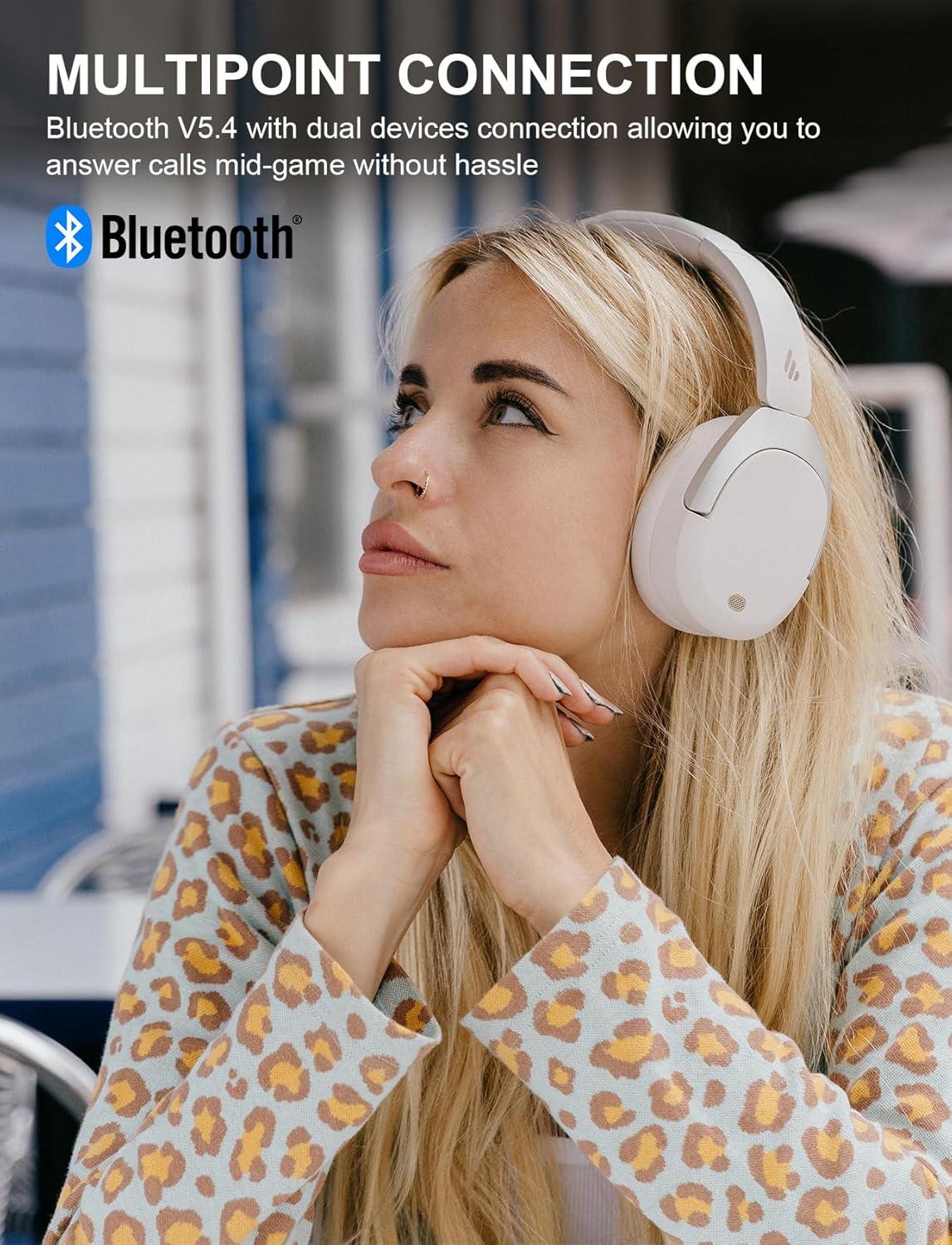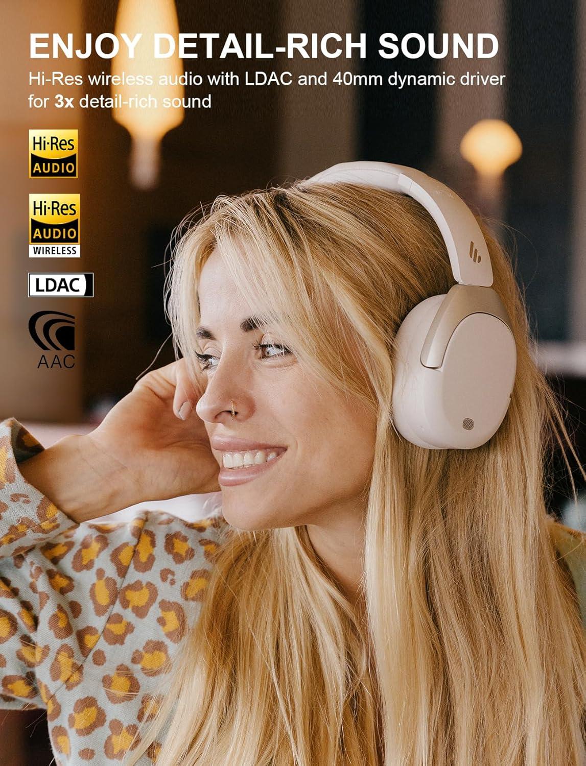 imageEdifier W830NB Active Noise Cancelling Wireless OverEar Headphones Foldable Lightweight Bluetooth Headset with HiRes Audio Dual Device Connection 94 Hours Playtime Fast Charging  BlackSand White