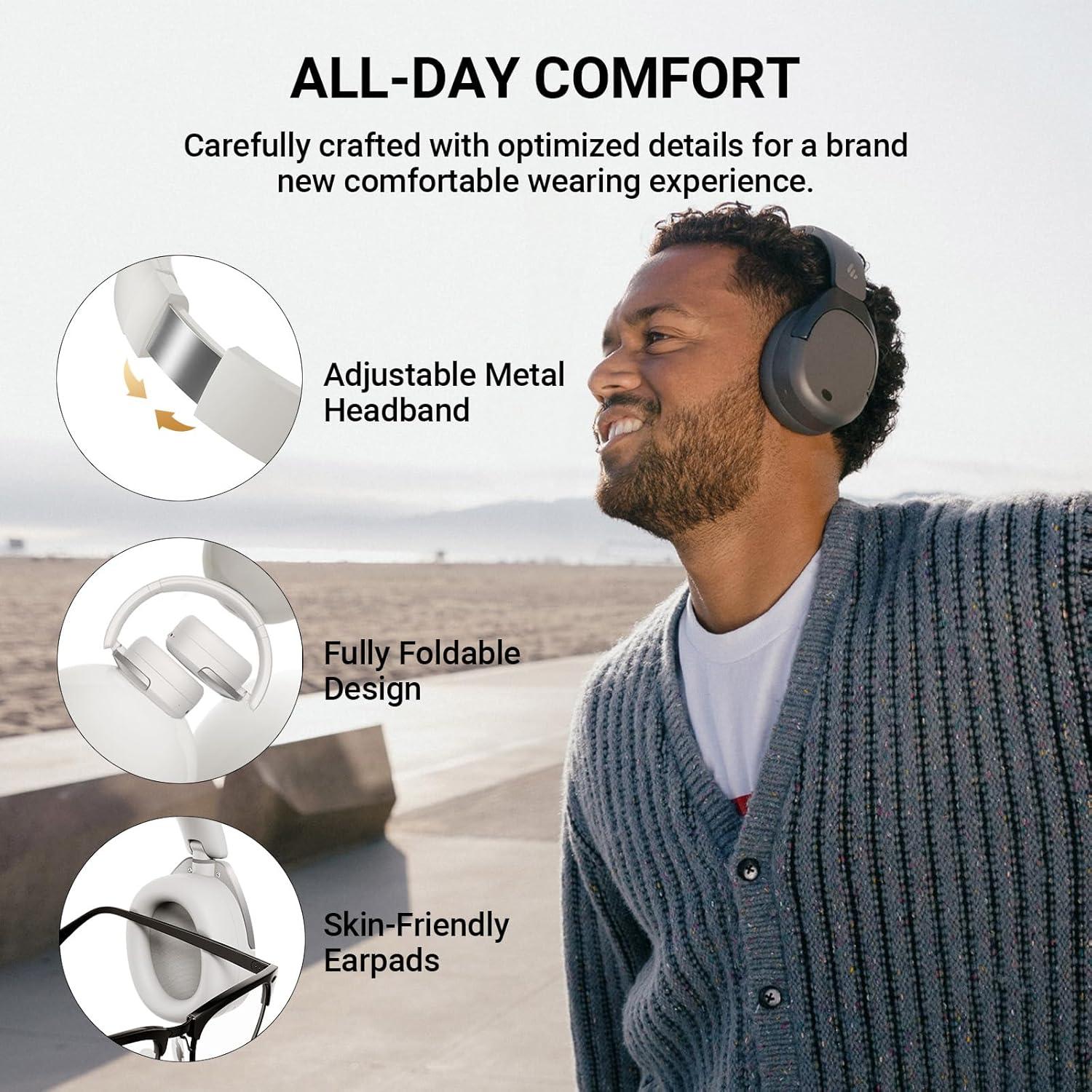 imageEdifier W830NB Active Noise Cancelling Wireless OverEar Headphones Foldable Lightweight Bluetooth Headset with HiRes Audio Dual Device Connection 94 Hours Playtime Fast Charging Grey