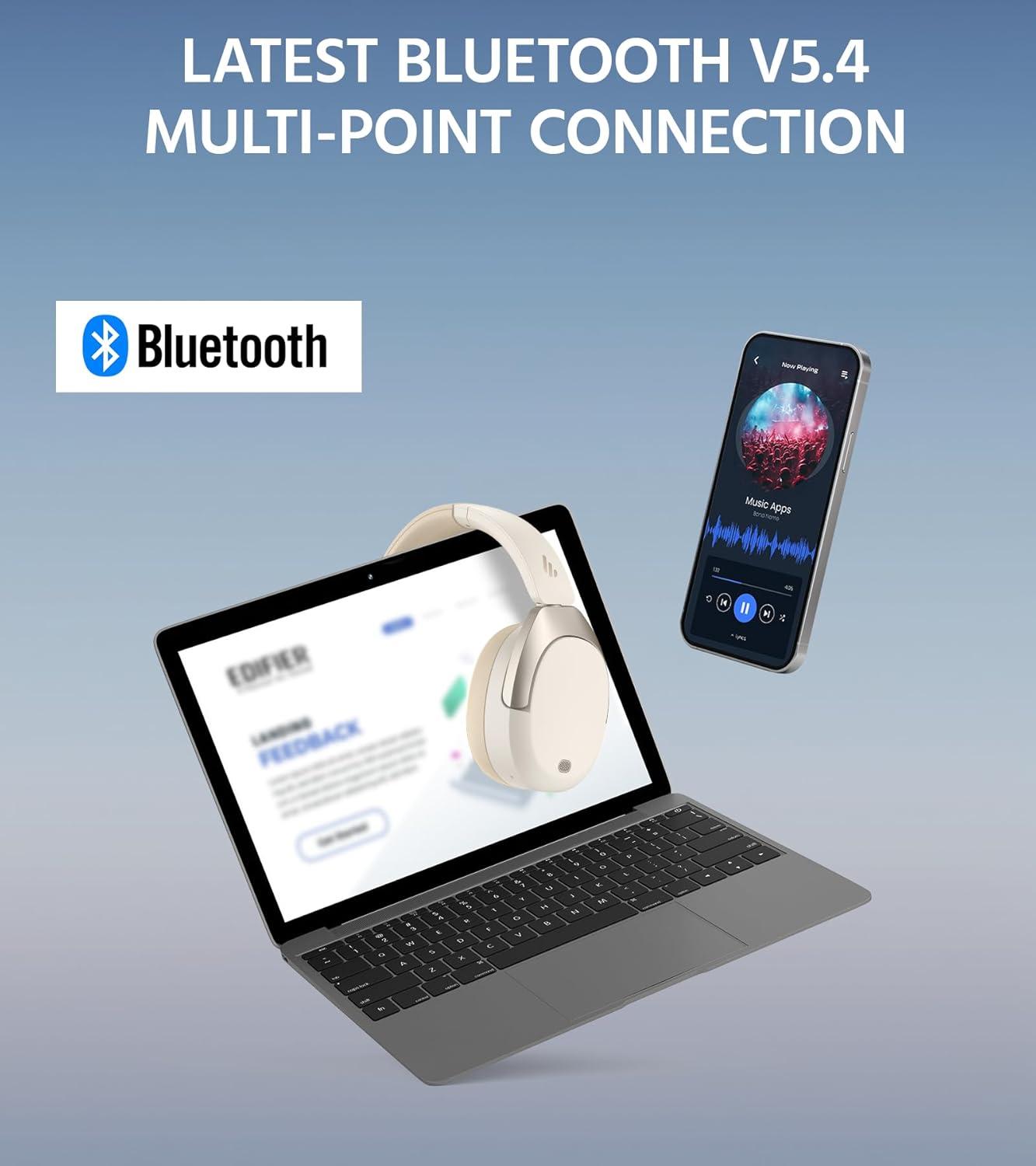 Edifier W830NB Wireless Over Ear Headphones with -45dB Active Noise Cancelling, 94H Playtime, LDAC Hi-Res Sound, Spatial Audio, Fast Charging, Multipoint Connection, Bluetooth V5.4 – Ivory (Renewed)