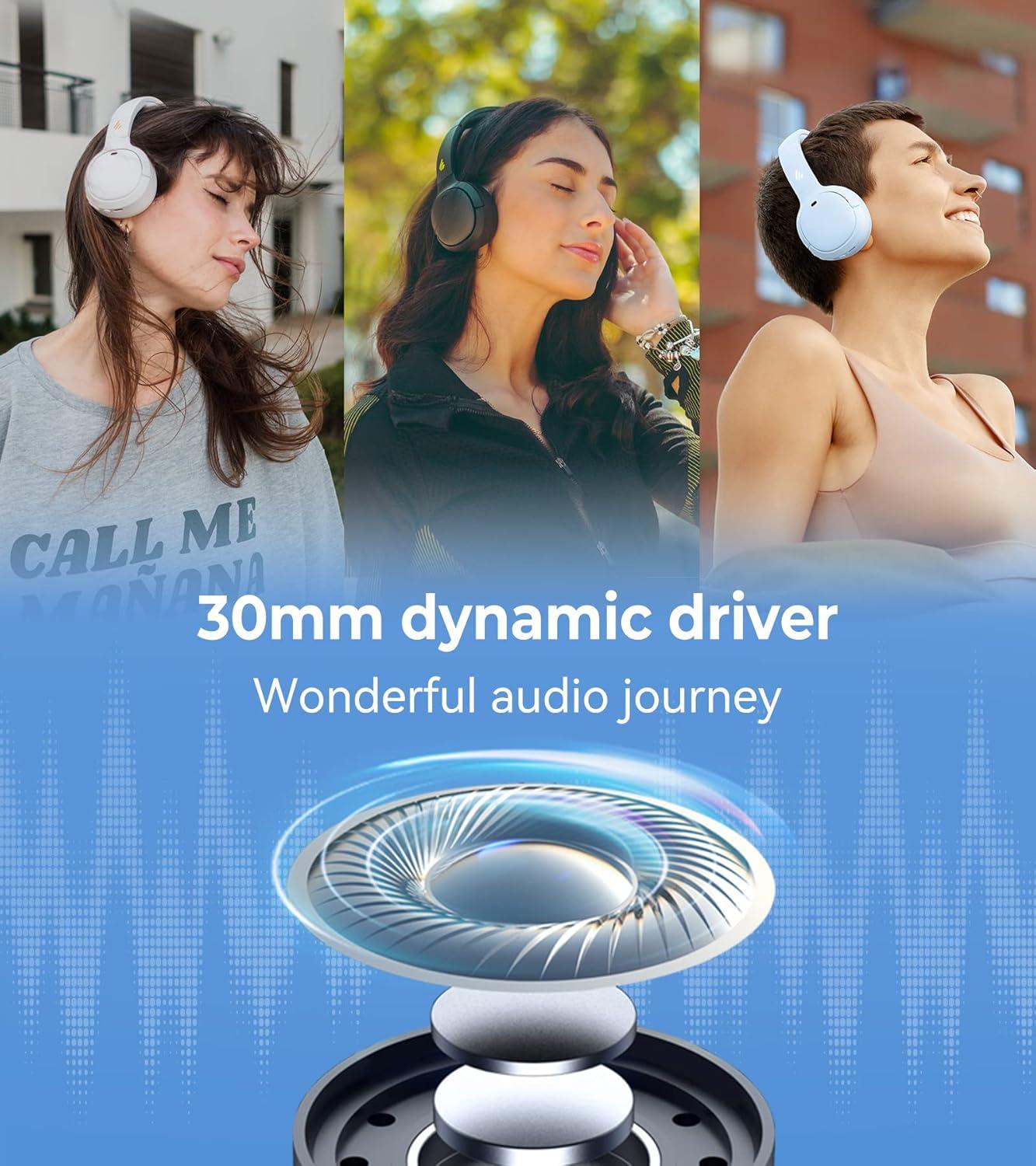 Solid Bass: The WH500 wireless headphones boast 30mm composite dynamic drivers (PU+PEEK) for powerful, accurate audio and enhanced bass, bringing all your favorite music to life.