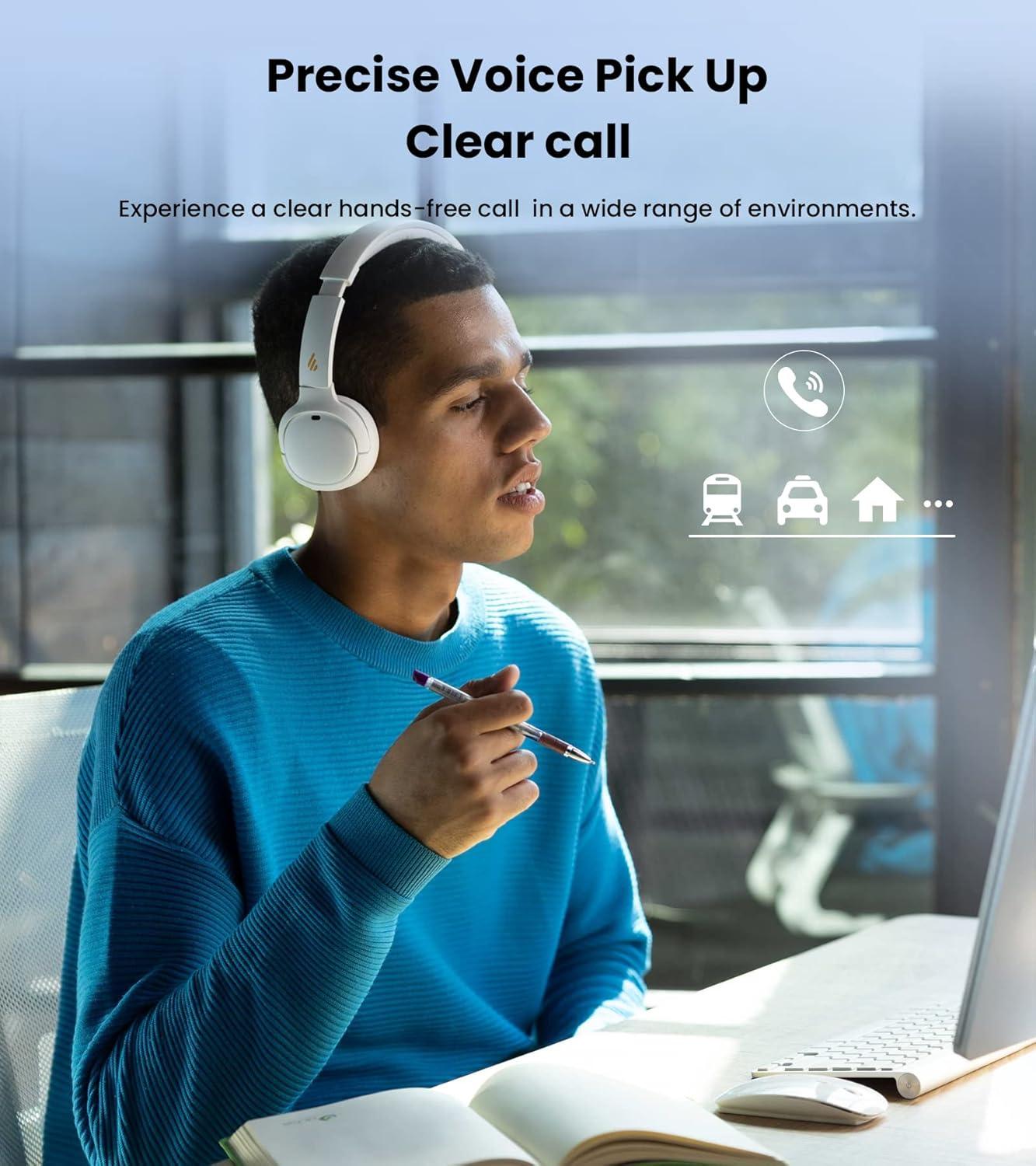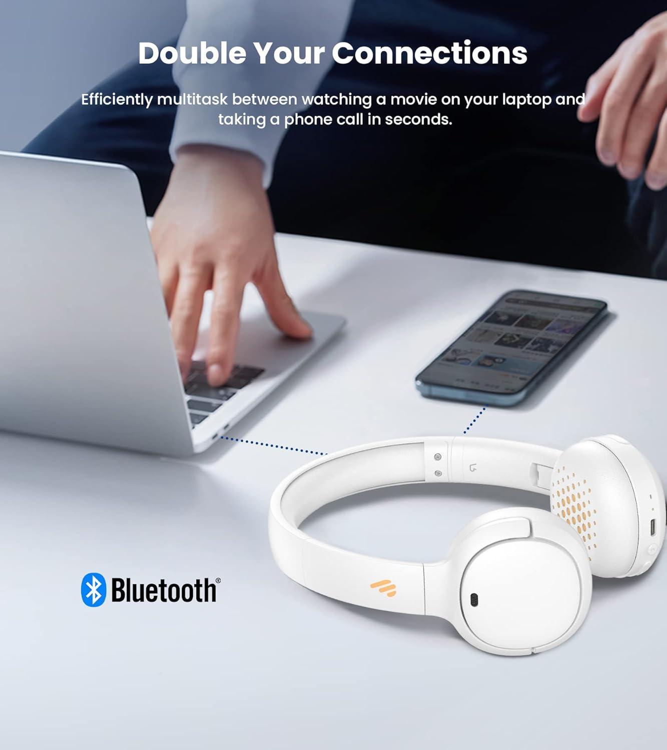 imageEdifier WH500 Wireless OnEar Headphones with Foldable Lightweight Design and Solid Bass Bluetooth Headset with Microphone 40H Music Playtime and Custom EQ via App for Home Office Travel WhiteWhite