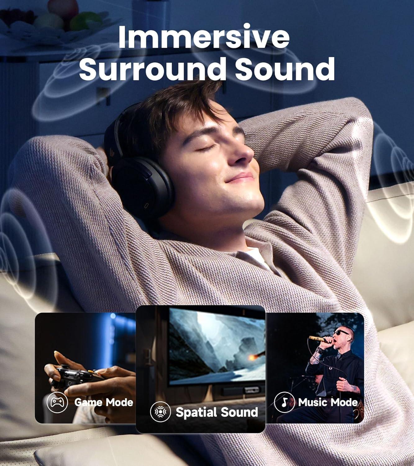 Cinema-Grade Spatial Sound & Smart Scene Modes: Dive into 3D surround audio – activate Spatial Sound for movie nights with immersive stereo detail. One-touch switching also optimizes settings for Music Mode and Game Mode. Perfect for films, gaming, or critical listening.